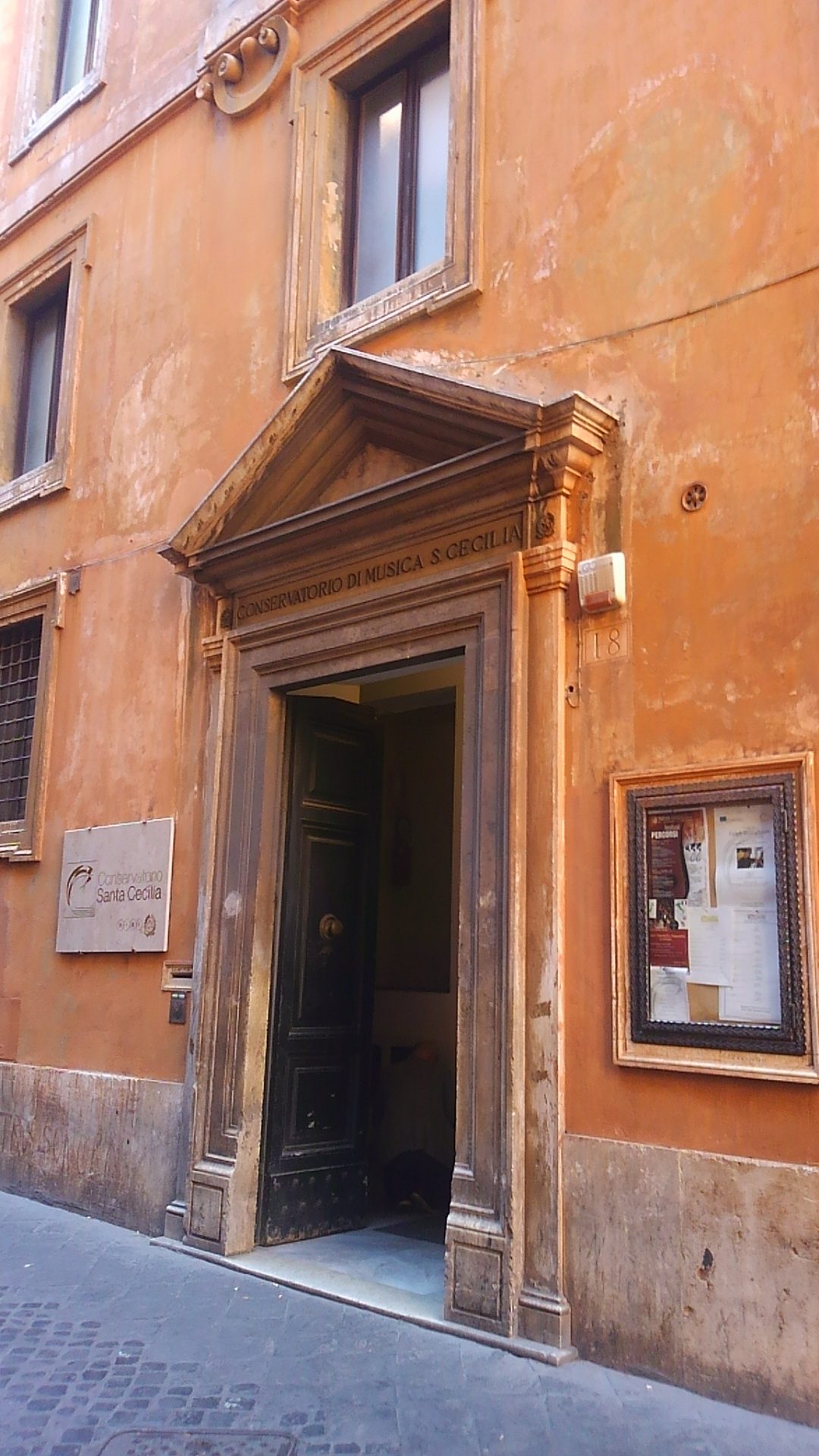 サンタチェチリア国立音楽院は、スペイン広場とポポロ広場の中程の賑やかな街なかの普通の建物。
